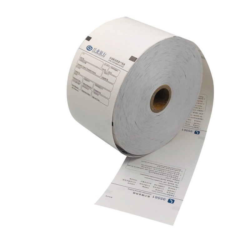 Ролни со банкомат хартии се натоварени на банкомат машини. Тие се записи за повлекување и хартија за собирање такси во банкомат машини. Тие обично се користат за печатачи на банкомат за да испечатат лизгања за потврда за трансакција по повлекувањето. Ова е лизгање на банкомат, познат и како лизгање на банкомат. Исто така, се користи за банкомати за автоматско печатење на лизгање на картичка по нормалното голтање на картички. На екранот ќе има и брза голтање картички. Имателот на картичката може да го однесе лизгањето до банкарската банка за да ја собере картичката.